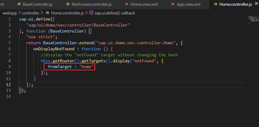 - [Home.controller.js]의 'display("notFound")'에 'fromTarget'을 'home'으로 지정