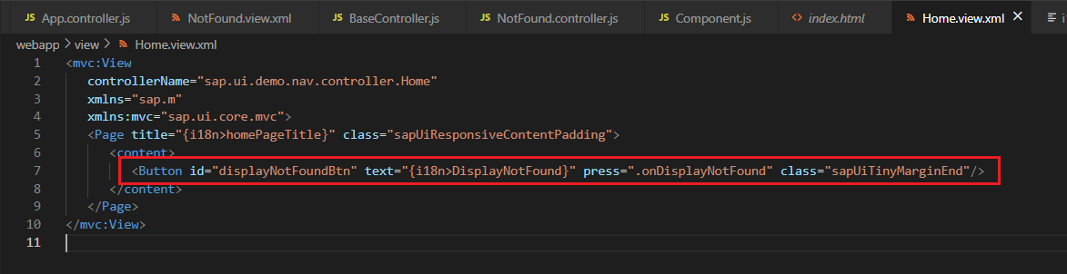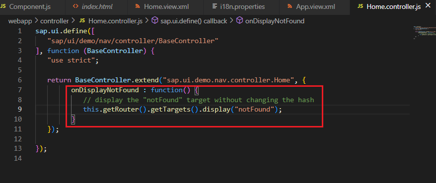 - [Home.controller.js]의 'display("notFound")'에 'fromTarget'을 'home'으로 지정