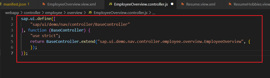 1) controllerName : [EmployeeOverview.controller.js] 사용해 view를 화면에 출력