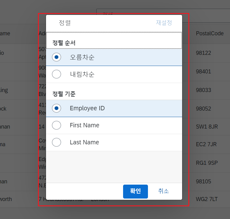 - 정렬 방식을 수정할 수 있는 창이 잘 나온다!
