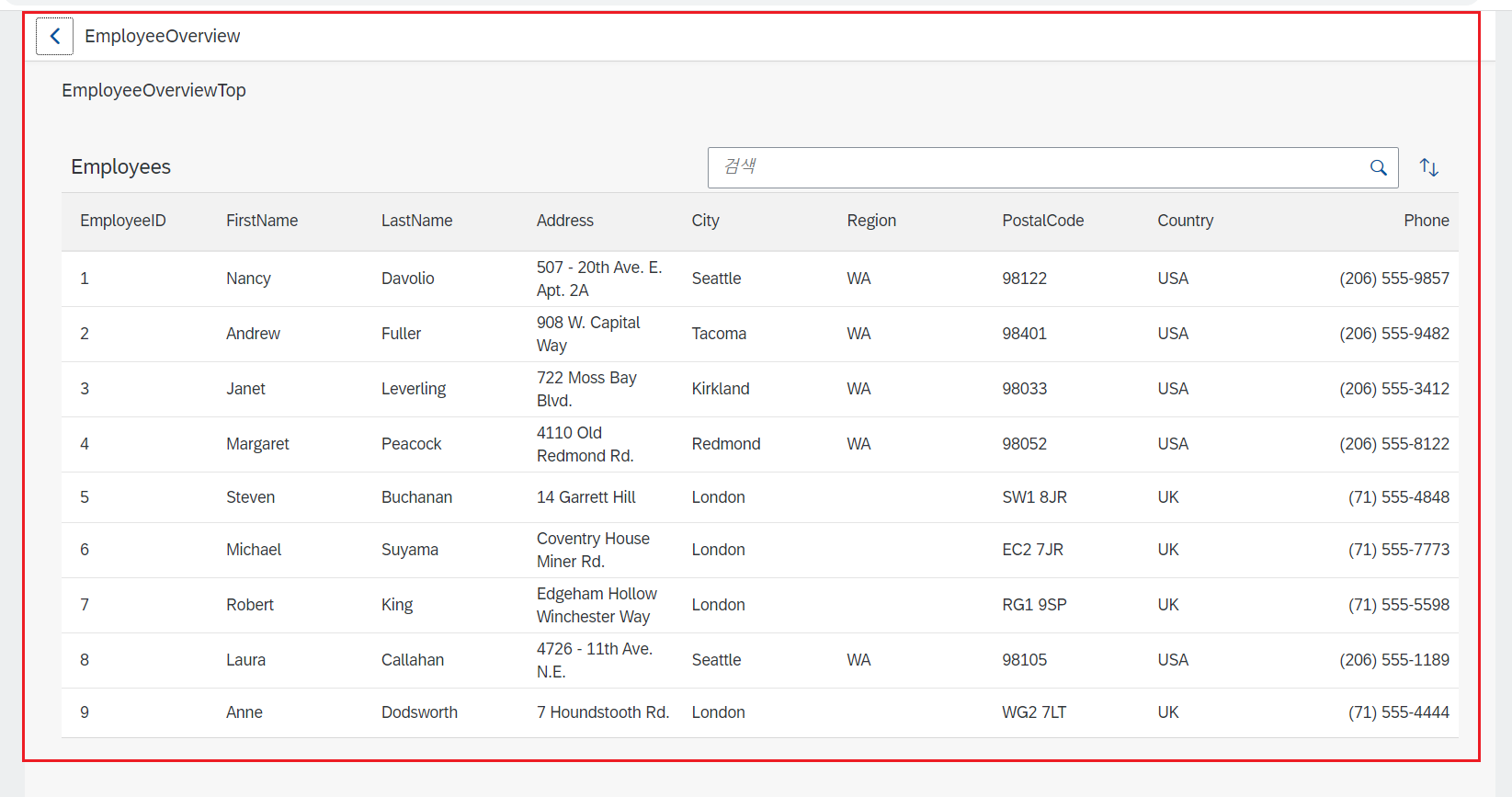 * Searchfield : 직원에 관한 사항을 검색