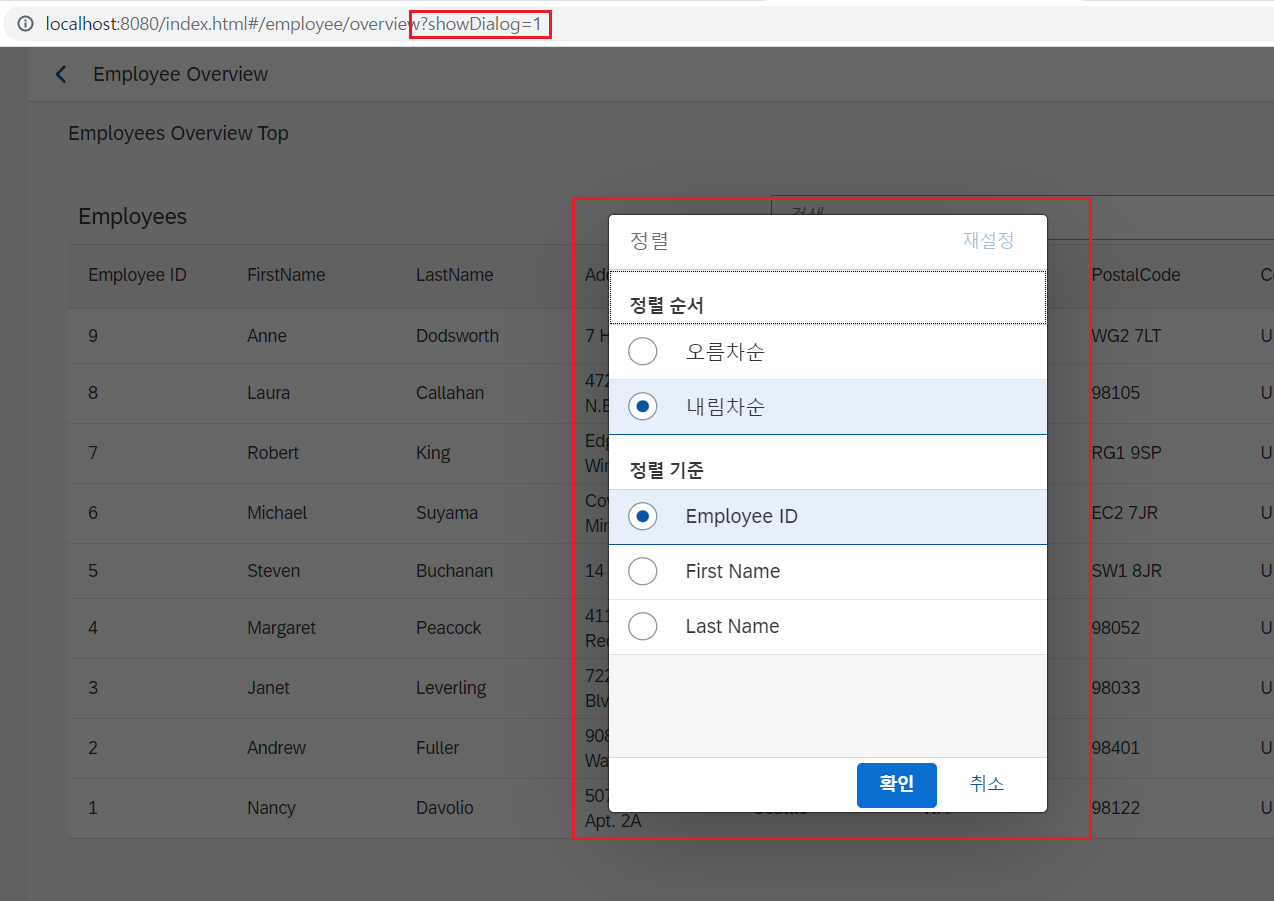 3) '_oRouterArgs' 값을 기준으로 두는 경로를 가지는 'employeeOverview' view 화면에 출력
