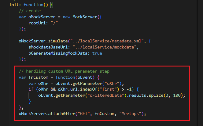 2) attachAfter : 'GET' 요청 사용, 위에서 설정해둔 'fnCustom' 콜백함수에 연결, mockdata 'Meetups' entity 집합이다.