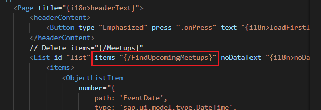 2) '{/FindUpcomingMeetups}'로 수정해 사용하고자 하는 JSON 데이터로 변경한다.