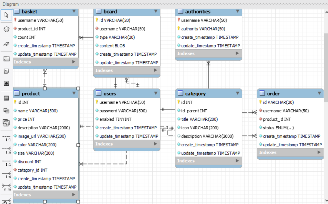 ○ <basket> 테이블의 'product_id'는 <product> 테이블의 'id'에 제약사항 존재