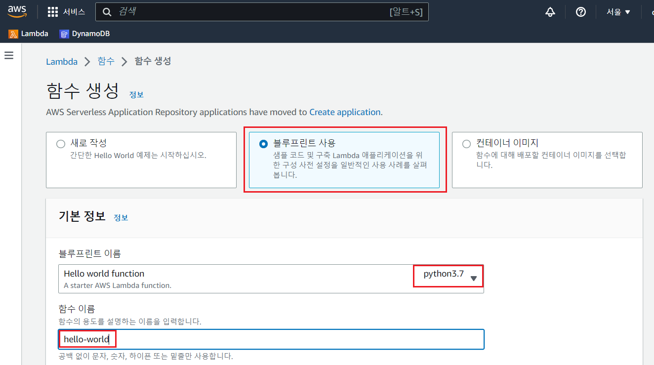 이제부터는 앞서 수행해본 Hello world를 참고할 수 있는 코드를 활용해 웹 페이지에서 보여주려고 한다. 원래는 Lambda 자체적으로는외부 호출이 불가능하다. 이전 파트에서 보여주었던 것은 외부