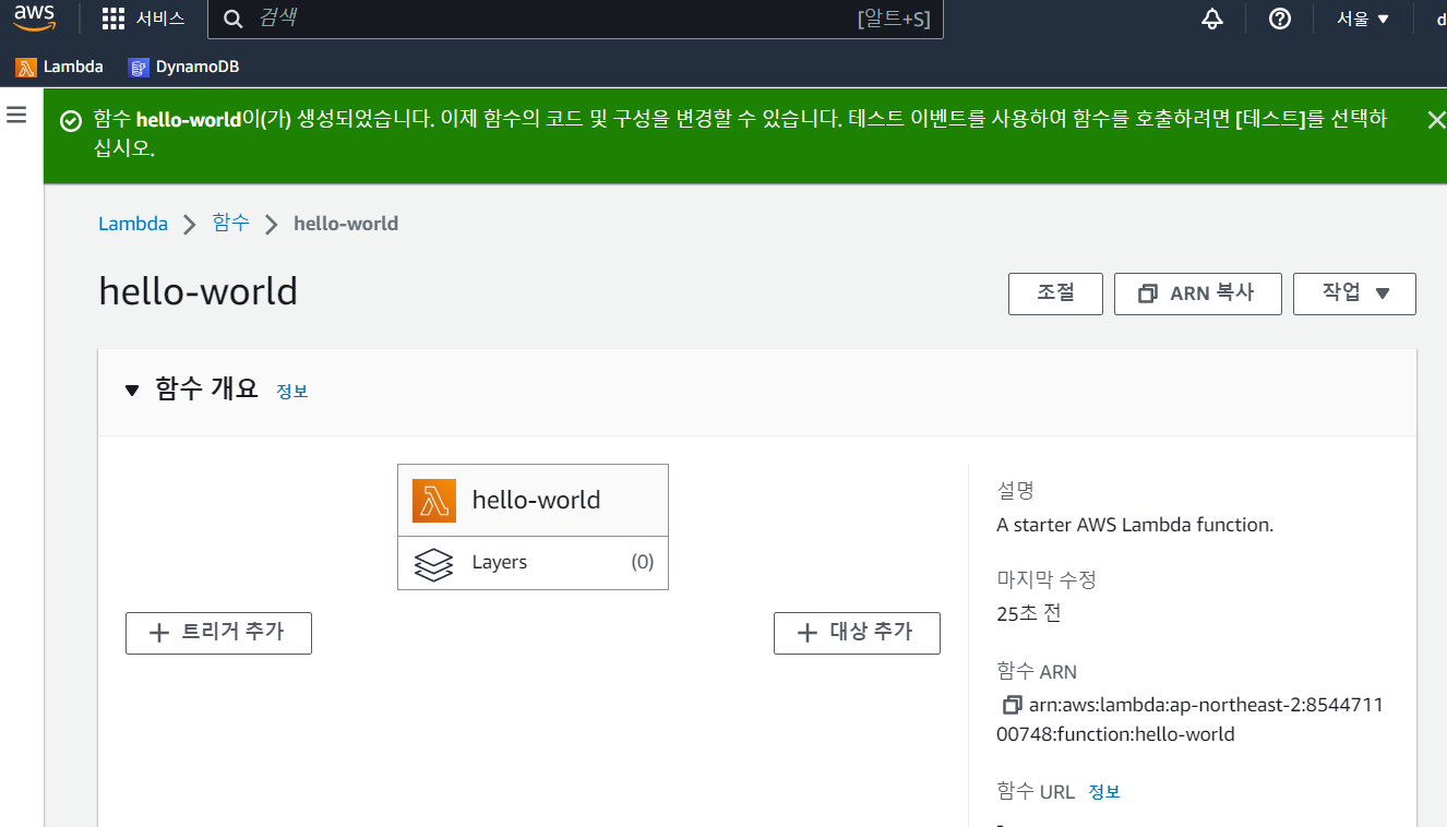 이후에는 별다른 설정없이 함수를 생성해주면, 위와 같은 페이지 정보를 확인할 수 있다.