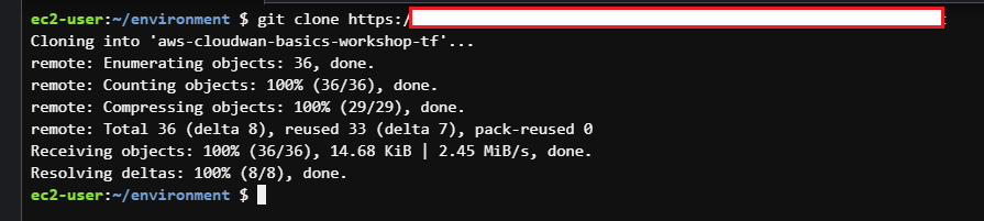 이전 파트에서 CloudWan Resource를 배포하는 과정에서 문제가 생겨 여러 가지 시도를 해본 끝에, 서브넷이 잘못 생성돼 있었고 새로운 VPC를 생성하면서 public subnet을 새롭게 설정해주었더니 Cloud9에 진입할 수 있게 되었다! 정확한 이유는 모르겠지만 일단 학습에 중점을 두고 다시 시도해보자.