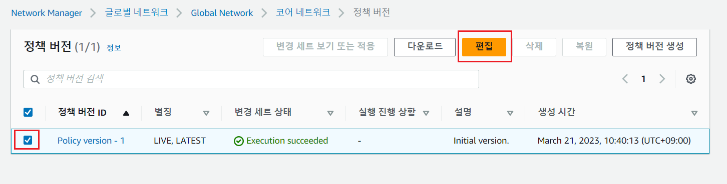 Attachment Policy를 변경하기 위해 기존의Core Network Policy를 수정할 것이다.