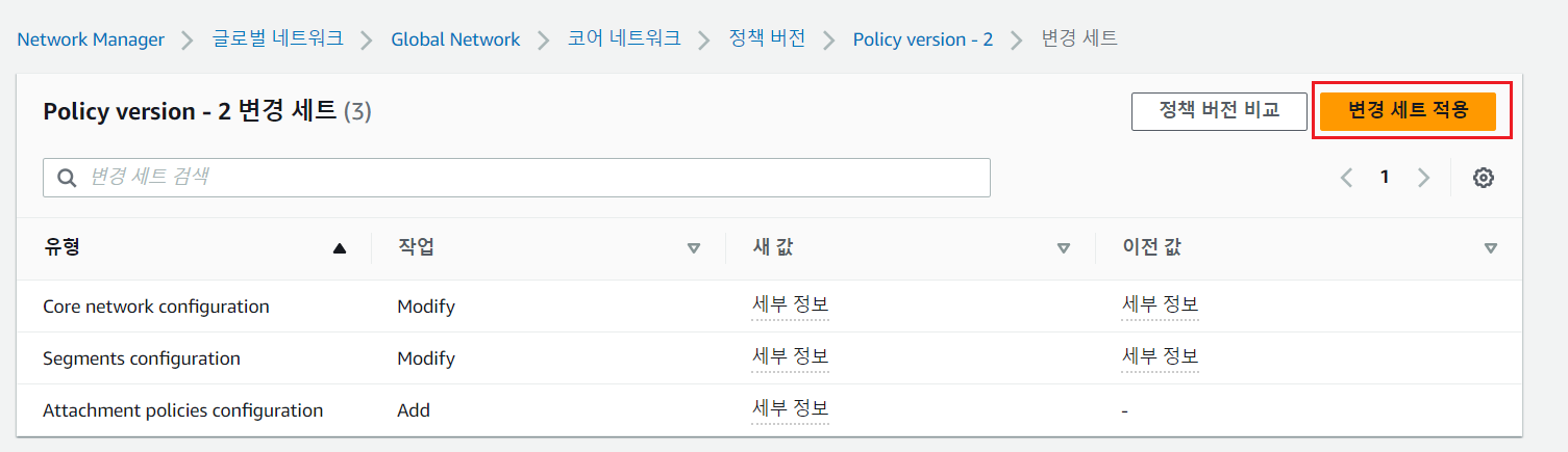 Ready to execute 상태에 있는 정책을 선택하고 변경 세트 보기 또는 적용을 클릭해 변경점을 확안히고