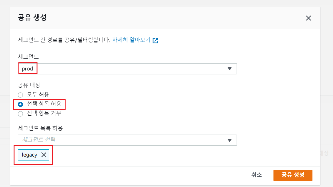 이는 prod와 legacy 간의 sharing(공유)을 생성하는 과정이다.