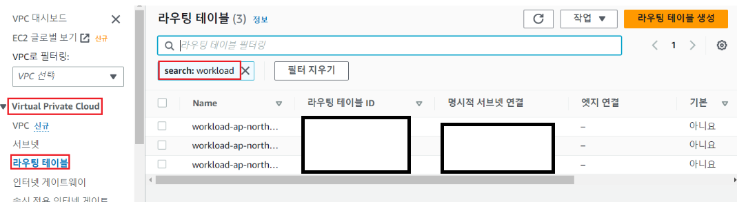AWS에서 VPC에 진입하여 Route tables(라우팅 테이블)로 들어간다.