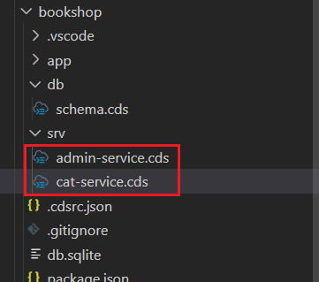 srv 폴더에 admin-service.cds와 cat-service.cds를 각각 생성한다.
