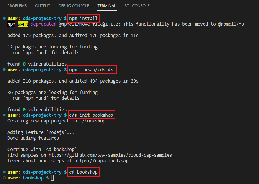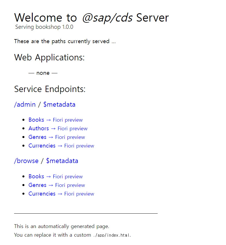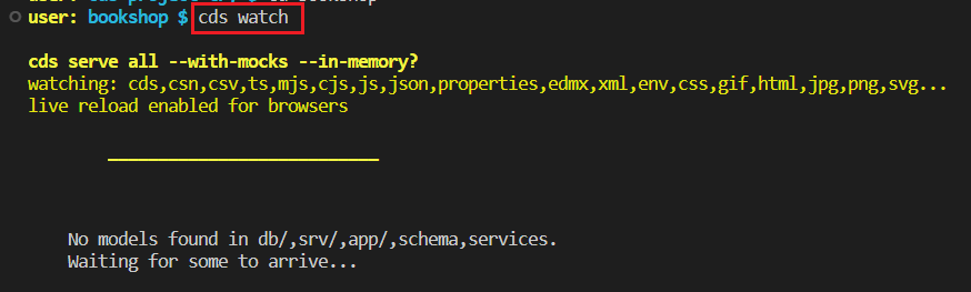 위와 같이 SAP-samples 중 bookshop 프로젝트를 만들어 연습을 진행한다.