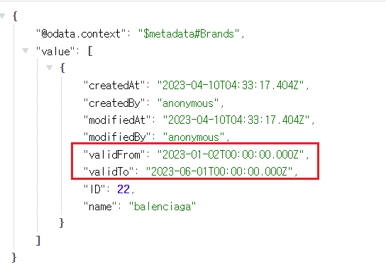 유효한 기간 내의 brand 데이터 값만 표출된다!