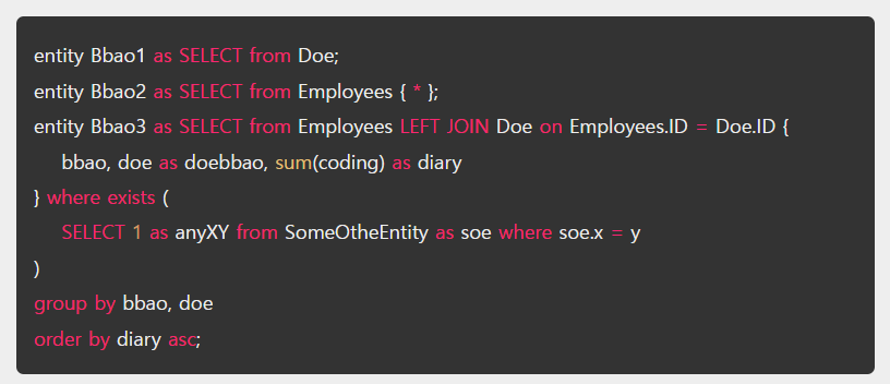 as projection on은 쿼리에서 SQL 전체 기능을 사용하지 않는다는 것을 나타내기 위해