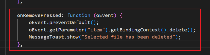 MessageToast 객체를 사용해 삭제된 파일에 대한 메세지를 표시한다.