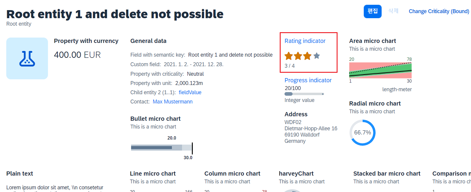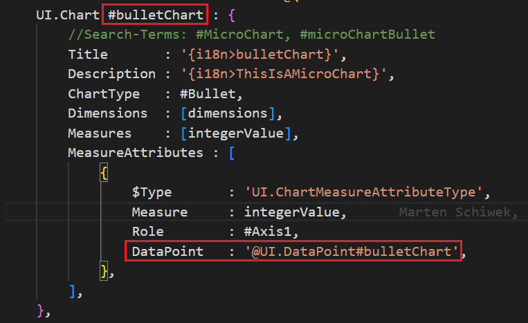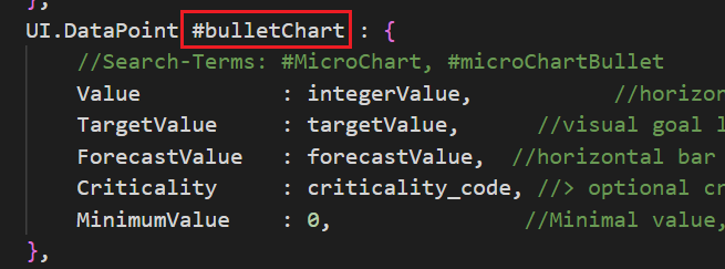 이는 데이터 속성 값을 정의해 두었던 @UI.DataPoint#bulletChart를 DataPoint에서 호출한다.