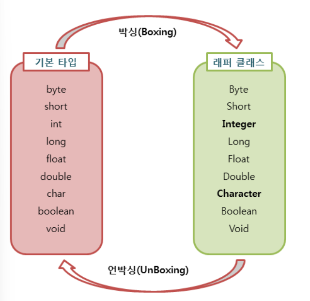 | UnBoxing | Wrapper Class의 Instance에 저장된 값을 다시 기본 타입의 데이터로 꺼내는 과정 |