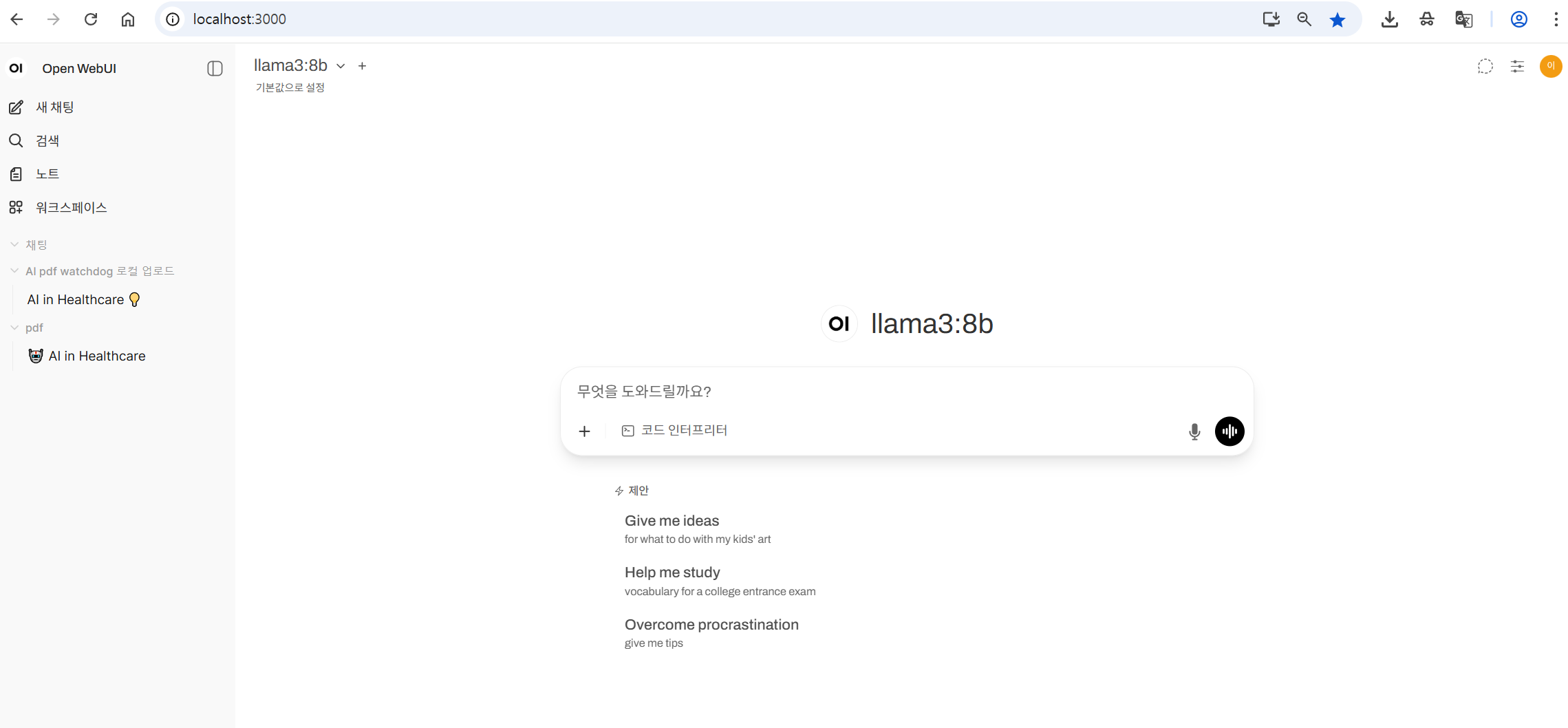 - localhost:3000으로 접속하여 Open WebUI를 실행시킨다.