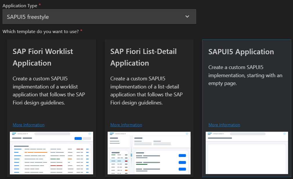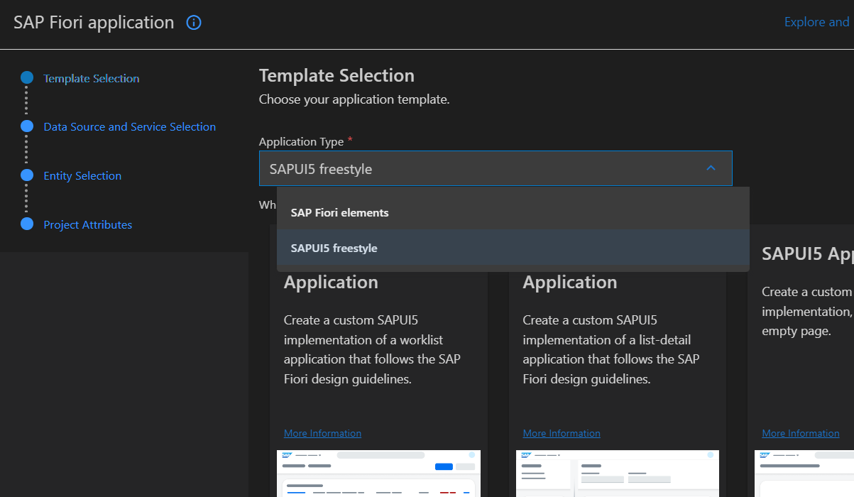 - Application Type에서 'SAPUI5 freestyle' 선택