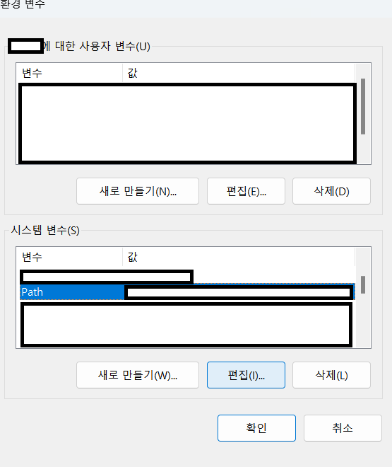 2) 시스템 변수의 Path 및 편집 클릭