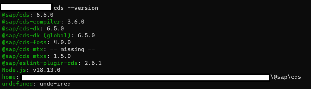 - cmd에 'npm install -global @sap/cds-dk' 입력 및 설치
