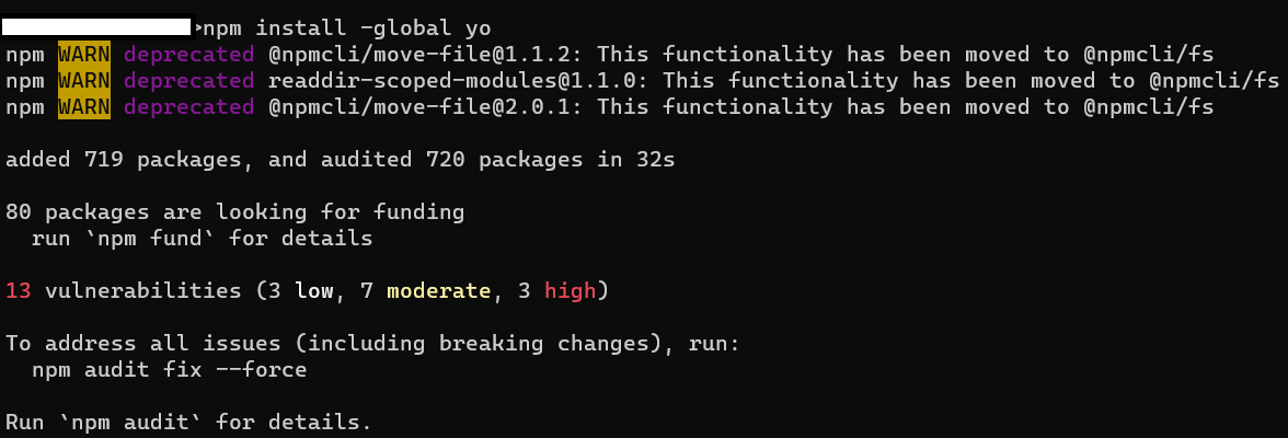 - 'npm install -global yo'