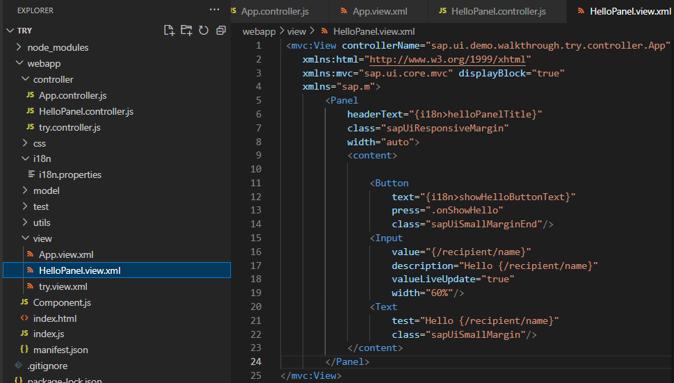- App.view.xml에 있던 코드 일부를 복사 붙여넣기
