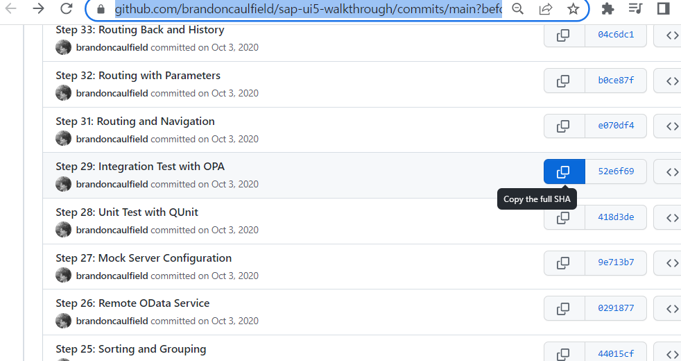 ○ 위 유튜버 Git 참고 : https://github.com/brandoncaulfield/sap-ui5-walkthrough/commits/main?before=26f804cea86ce1fd92e22d9f287fec7f273ca46f+35&branch=main