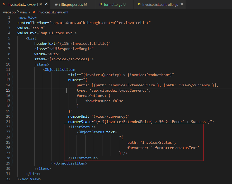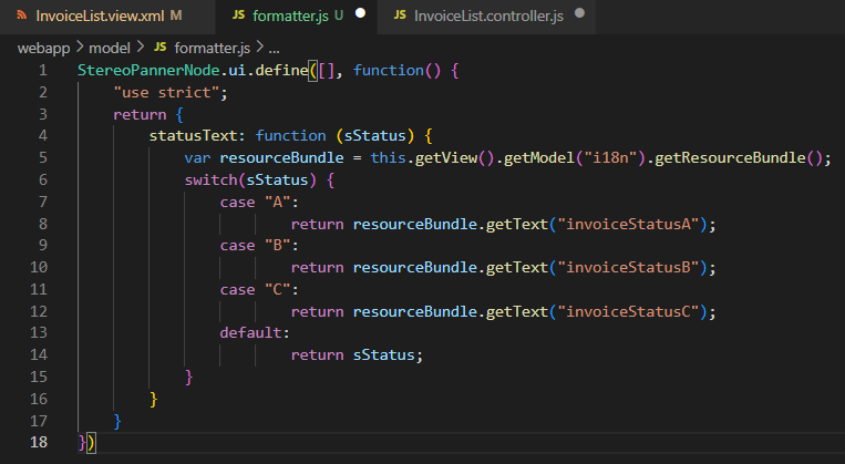 - formatter: .formatter.statusText : model/formaater.js에 가공한 statusText 조건문 호