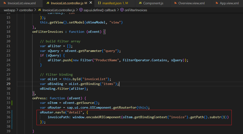 2) attachPatternMatched : 해당 메서드를 통해서 'detail' route와 '_onObjectMatched' 액세스하기 위해 세부 경로 연결