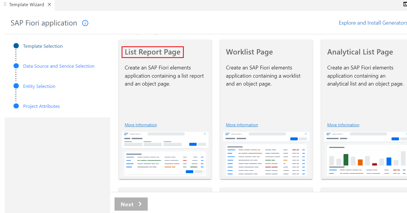 - Application Generator 검색 및 Fiori: Open Application Generator 클릭