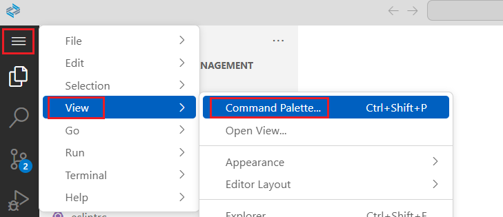 - 좌측 상단의 툴바에서 View - Command Palette 클릭
