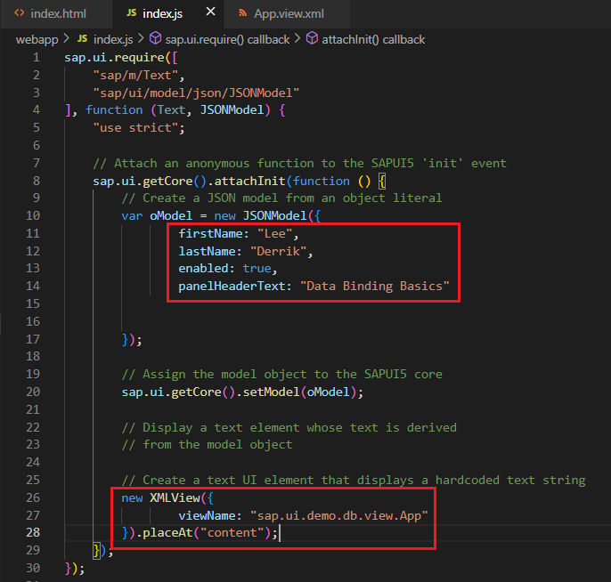 3) JSONModel : 데이터를 문자 객체로 전달하는 new JSONModel 생성해 oModel 변수에 저장