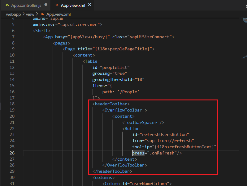 - Button 기능을 실행하면 App.controller.js에 선언해둔 onRefresh 호출