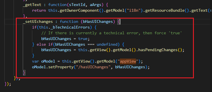 - 'bHasUIChanges'가 'undefined'일 때에는 this.getView().getModel().hasPendingChanges(); 반환