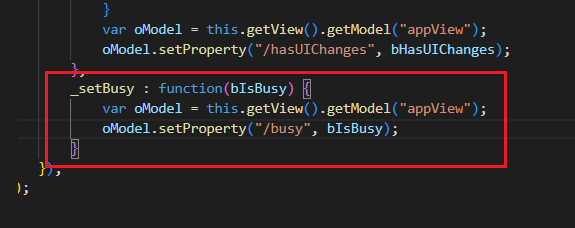 3) '/busy'를 path로 두며 'bIsBusy' 값을 가지는 속성의 oModel 설정