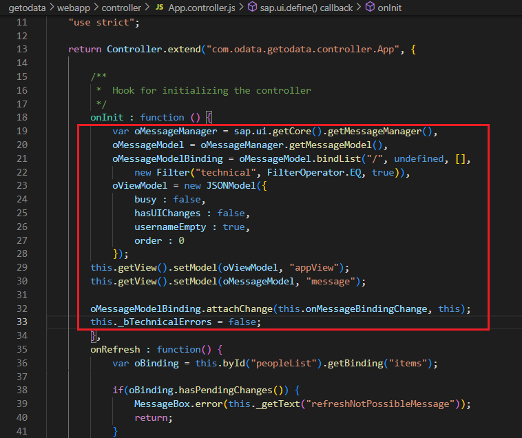 - 변수 'oMessageModel'에서 'getMessageModel()'로 'oMessageModel' 선언