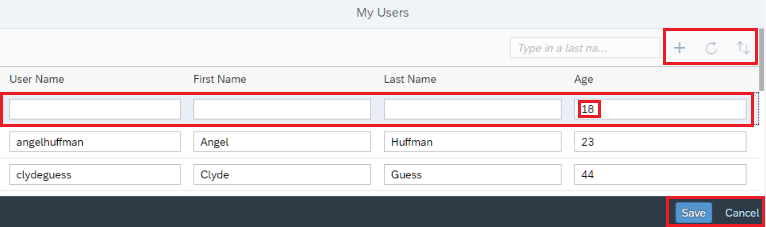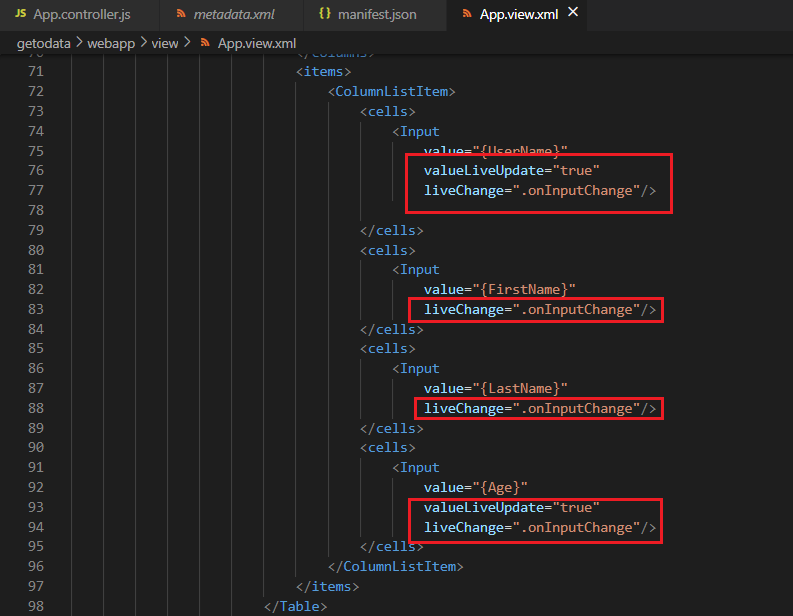 - UserName 및 Age 필드에 대한 valueLiveUpdate 속성을 설정한다.