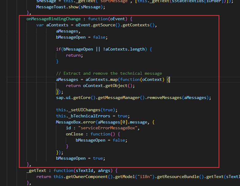 1) 변수 'aContexts'에 'oEvent'의 source의 contexts와 'aMessages', 'false' 초기화해 둔 'bMessageOpen'를 설정하자.