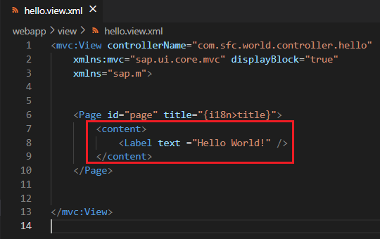 - [webapp] - [hello.view.xml]의 내용 일부 수정