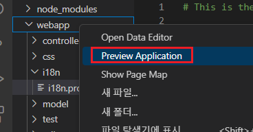 - [start fiori run...] 선택 또는 [terminal]에 'npm run start' 입력해 실행