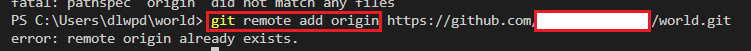 2) 이미 git과 연결돼 있으면 마찬가지로 error 메세지가 뜬다.