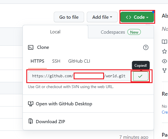 - git 사이트에서 [<> Code]를 눌러 [HTTPS]에서 해당 링크를 [copy]