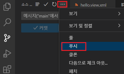 - [소스 제어]에서 원하는 텍스트를 입력하고 [ctrl + enter] 혹은 [커밋]을 통해 커밋 시도