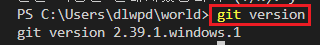 - [terminal]에 'git version' 입력 및 버전 확인