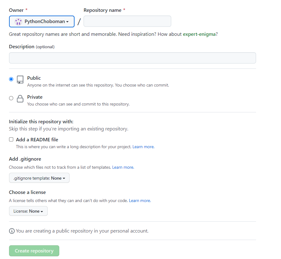 - github 홈페이지에서 새로운 repository 생성