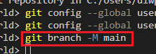 - [terminal]에 'git branch -M main' 입력