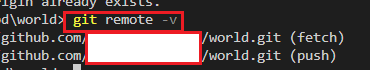 - [terminal]에 'git remote - v'를 입력해 git remote 등록 여부 확인